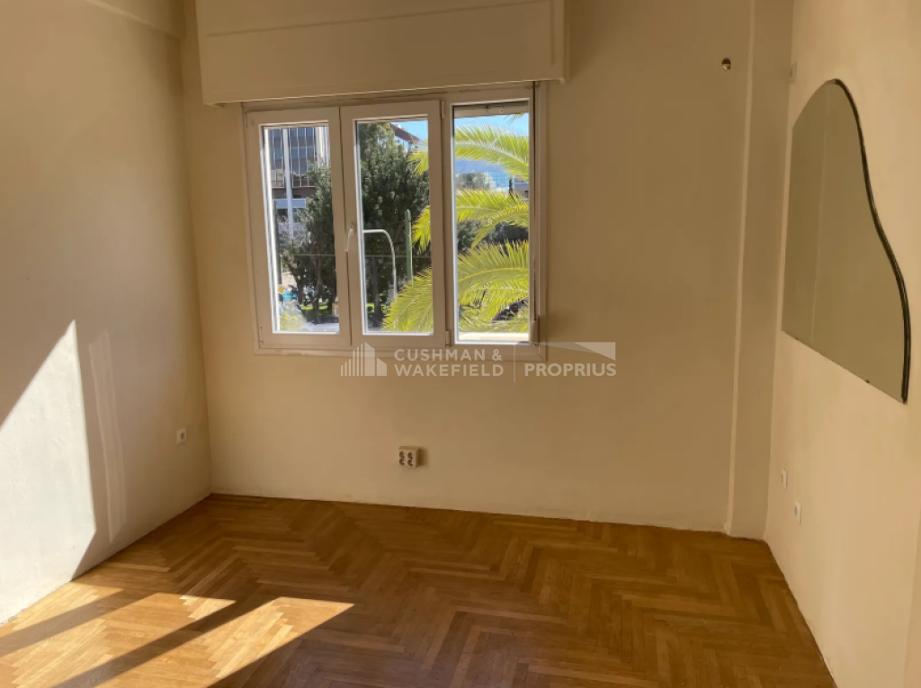 Bright corner apartment available for rent in Athens, close to Megaro Mousikis metro station. The apartment features 2 bedrooms, 3 additional enclosed rooms suitable for an office, storage, or auxiliary use, 1 bathroom, and 1 WC. It includes autonomous oil heating and a storage room within the apartment.
