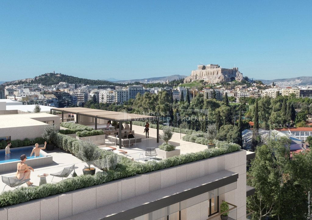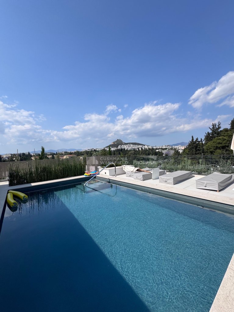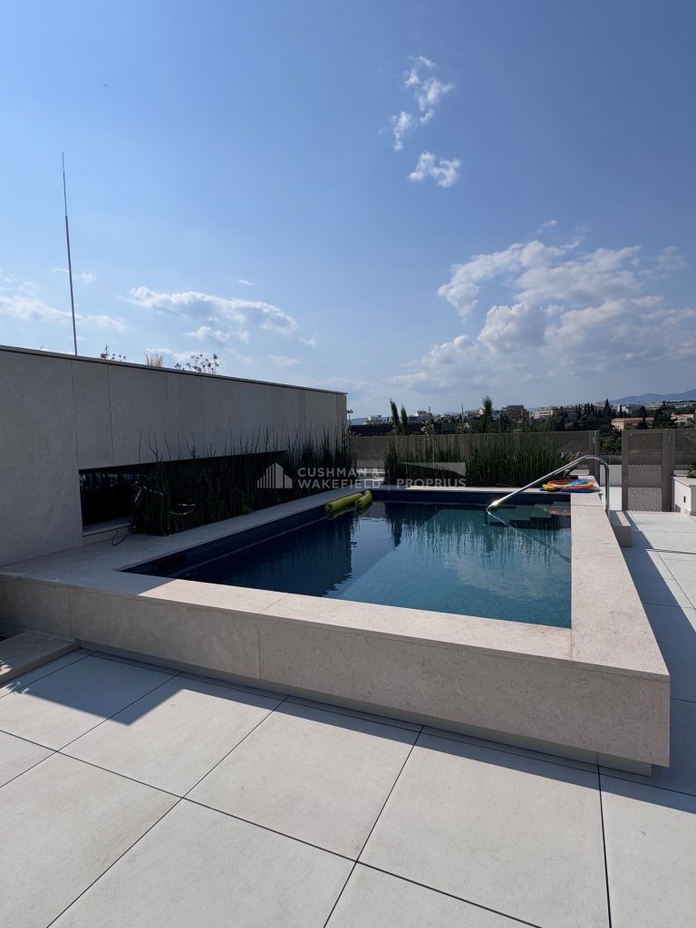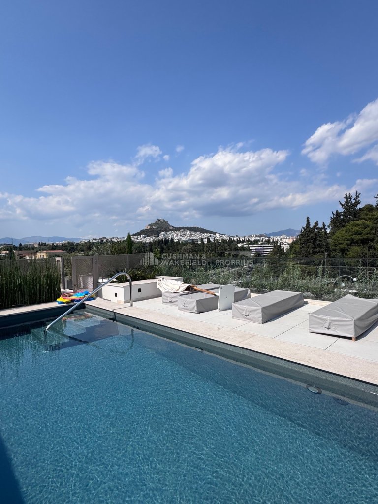 Rooftop Pool: sun loungers, seating area, ideal to host friends and enjoy views of Lycabettus Hill, the Acropolis, and the sunset towards Piraeus.