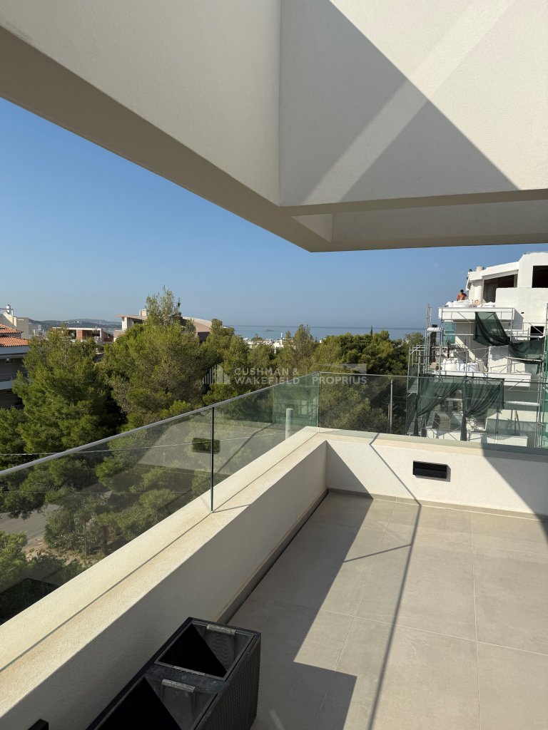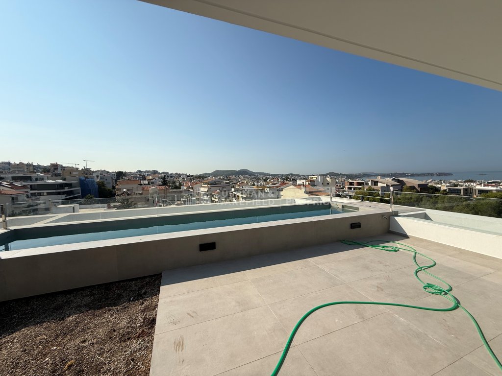 In Voula, this luxurious newly built corner maisonette offers breathtaking 360° sea views and combines elegance with comfort in one of the area's most tranquil locations, directly opposite a park. Spanning 220 sqm across the 3rd floor and a roof chamber, it is designed for premium living and includes a private 15 sqm pool and a beautifully appointed outdoor dining and BBQ area.